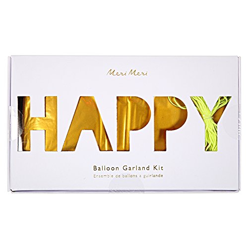 Studio : Meri Meri Publisher : Meri Meri Binding : Health and Beauty Product Description A big HAPPY BIRTHDAY balloon garland kit with shiny gold letter shaped balloons and additional colored honeycomb ball pennants. Pack contains 13 balloons and 12 honeycomb balls. Garland length: 20 feet. Pack size: 8 x 5 x 2 inches. 0