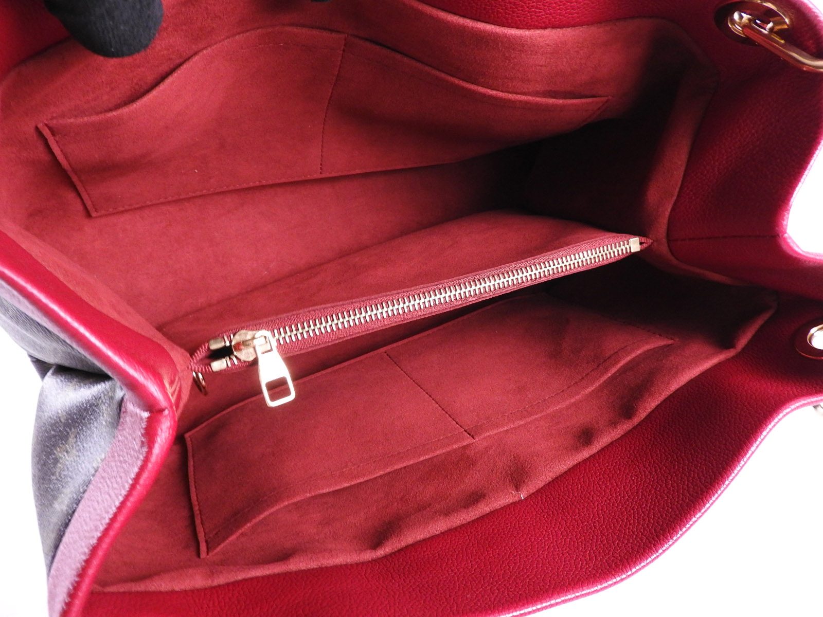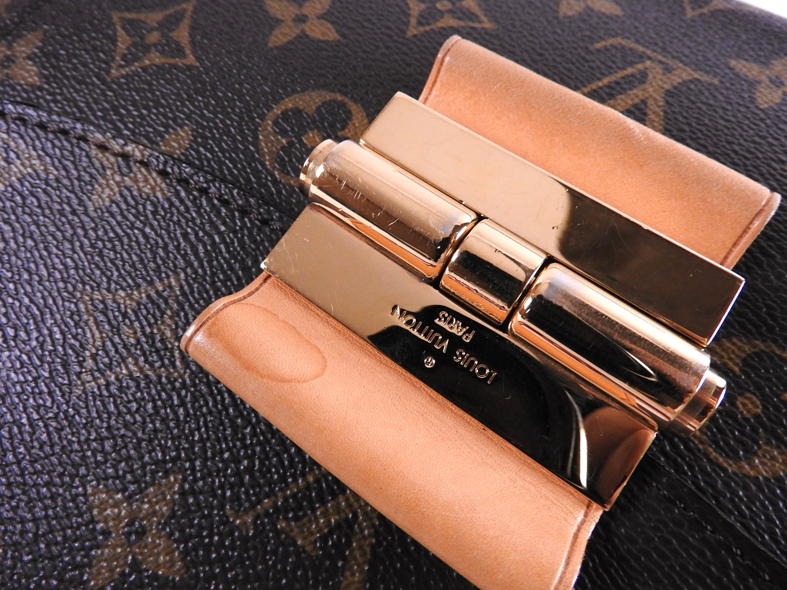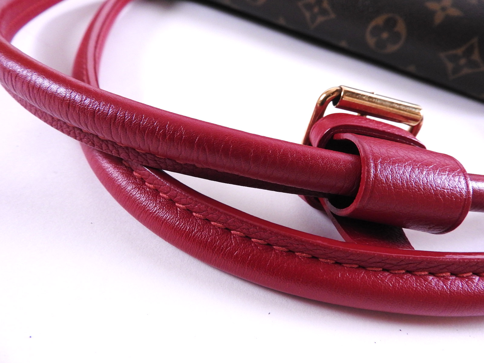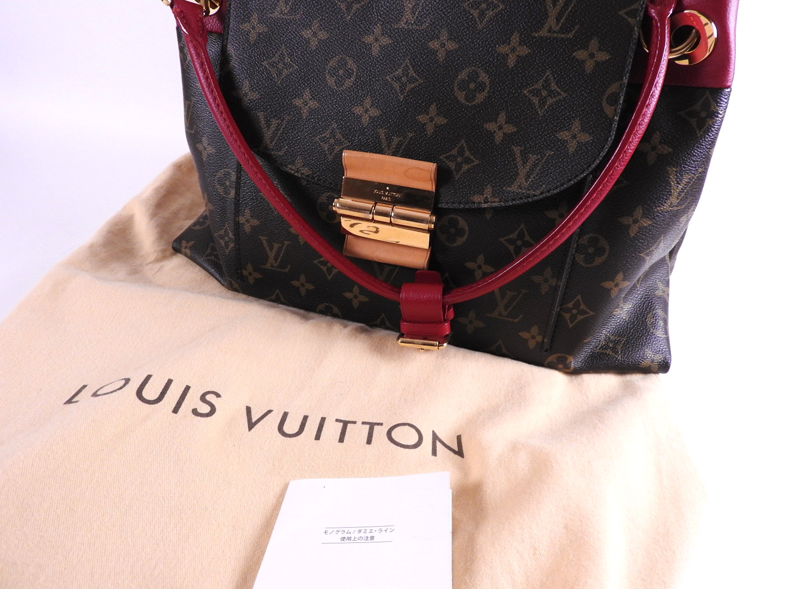 | Exterior | Monogram: Barely used feeling. Good condition. Rouge Leather: Barely used feeling. Good condition. Normal Leather: Barely used feeling. A few small scratches, stains and slight tanning. |