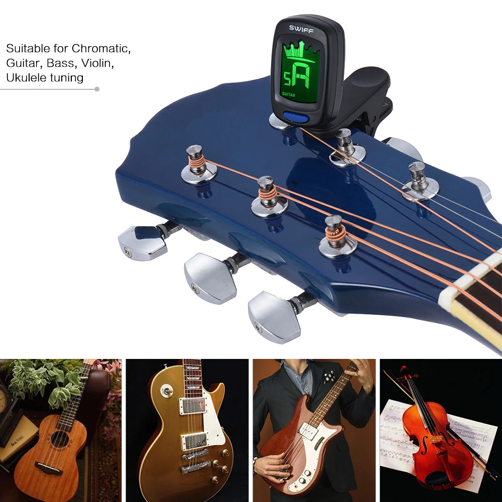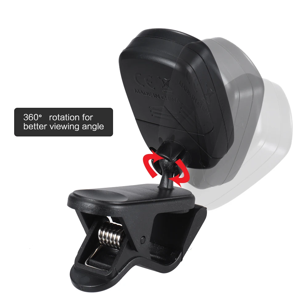 Clip-on tuner for chromatic/ guitar/ bass/ ukulele/ violin.