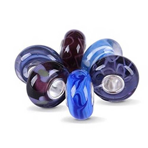 - Feature : Six Assorted Blue and Violet Glass Beads / Flowers and Swirls / Murano Glass Bead / Pandora, Biagi, Chamilia and Troll Bead Compatible / .925 Sterling Silver Bead Core