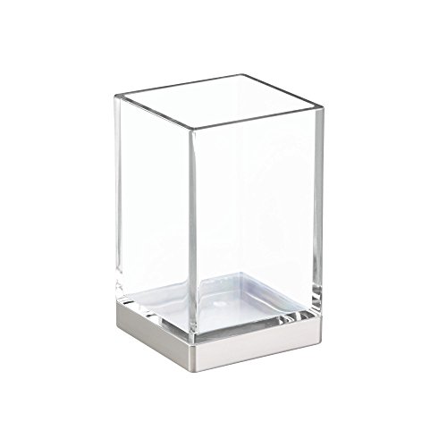 mDesign Modern Square Slim-Design Tumbler Cup for Bathroom Vanity Countertops - for Mouthwash/Mouth Rinse, Storing and Organizing Accessories - Pack of 2, Clear/Brushed