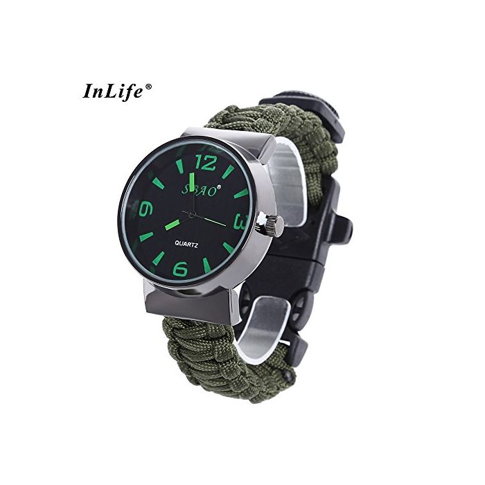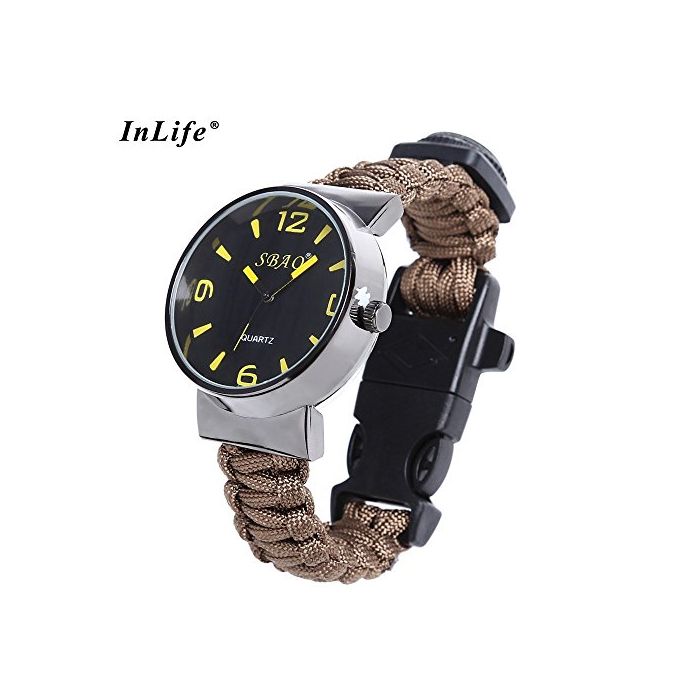Inlife 아웃도어 손목시계 서바이벌 팔찌 파라 코드 팔찌 kompas/whistle/파이어 스타터/scraper 부착