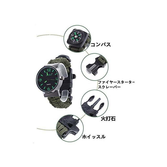 원본상품명:Inlife アウトドア 腕時計 サバイバルブレスレット パラコドブレスレット コンパス/ホイッスル/ファイヤスタタ/スクレパ付き