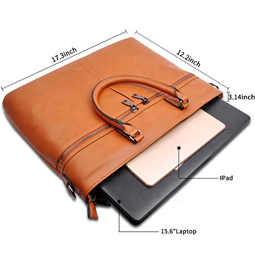 -. Feature : LAPTOP TOTE--Classic design laptop bag for women up to 15.6 inch,everyday carrying for work travel / INDEPENDENT LAPTOP PROTECTIVE LAYER--One main protective layer about 0.6cm thick with top elastic clasp.If have any problem after used,please feel free to contact,you will get new replacement parts. / ADVANTAGE--1.Double strong handles with metal fix components,2.the bag front side with two zipper pockets,separated spaces make things easy to find.3.main center independent padded laptop layer,medium size for iPad,power bank and so on / LAPTOP TOTE DIMENSIONS--12.2Inch(H)X 17.3Inch(L)X 3.14Inch(W),double handles about 9cm/3.54" / MATERIAL AND DESIGN--Big size and capacity,soft external material and durable lining,perfect for casual work business/all-purpose use