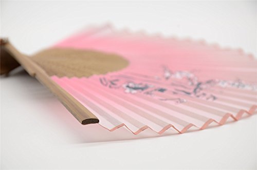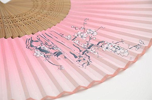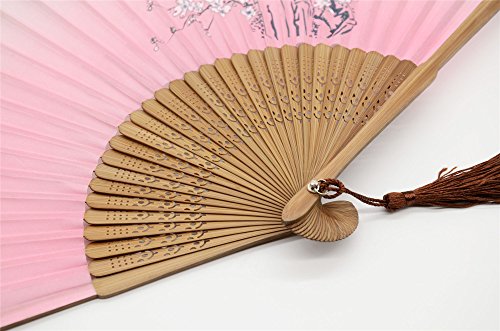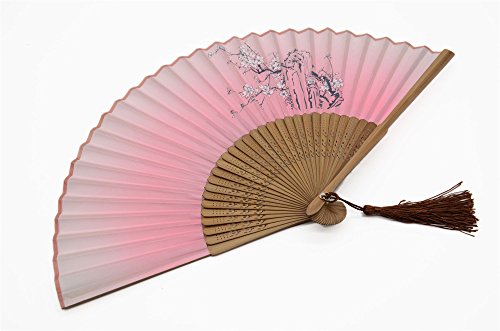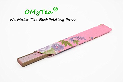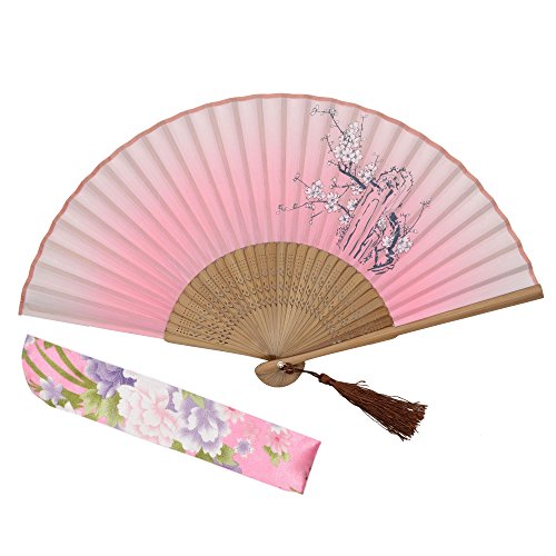 OMyTea "Cold Plum" 8.27"(21cm) Women Hand Held Folding Fans with Bamboo Frame - With a Fabric Sleeve for Protection for Gifts - Chinese / Japanese Vintage Retro Style (WDJ-10-Pink)