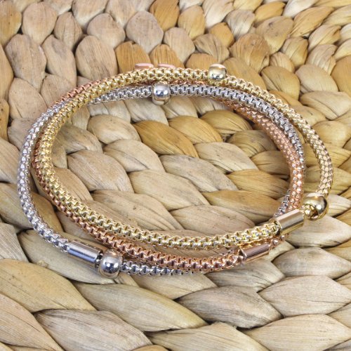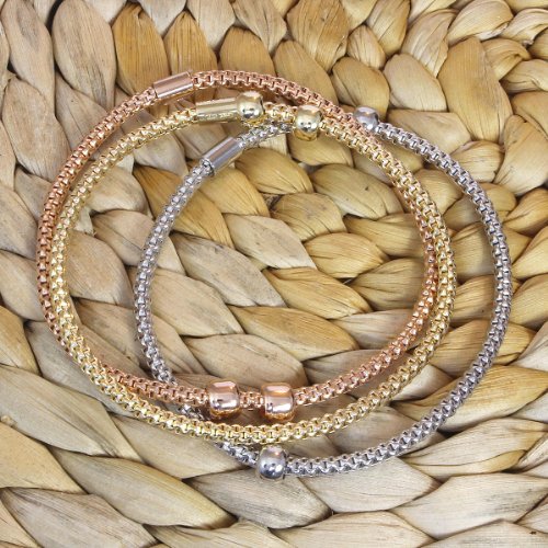 - Title : White Gold over Sterling Silver Flexible Mesh Bracelet with Beads