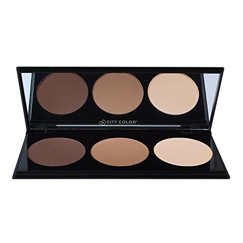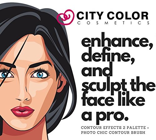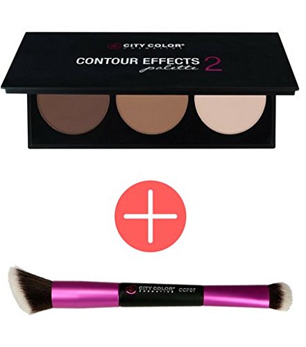 CITY COLOR COSMETICS Photo Chic Dual Ended Contour Brush + Contour Effects 2 Palette Set - Professional powder/liquid/cream makeup bundle