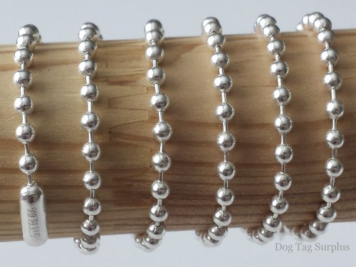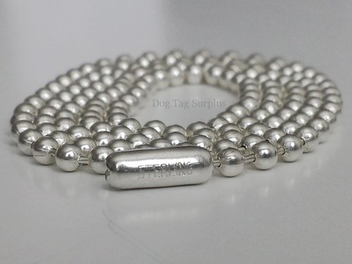 Solid 925 Sterling Silver Neck Chain 3.2mm Mens Military Jewelry Army Navy Style Dog Tag Ball Chain (30 Inch)