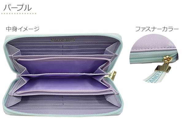 | デザインと使いやすさを兼ね備えたラウンド長財布。テープの引き手と、オーロラ箔のロゴが可愛い♪お札やレシート、小銭をすっきり収納できるのが魅力です。 |