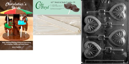 Cybrtrayd 'Crystal Heart Lolly' Valentine Chocolate Candy Mold with 50 4.5-Inch Lollipop Sticks and Chocolatier's Guide