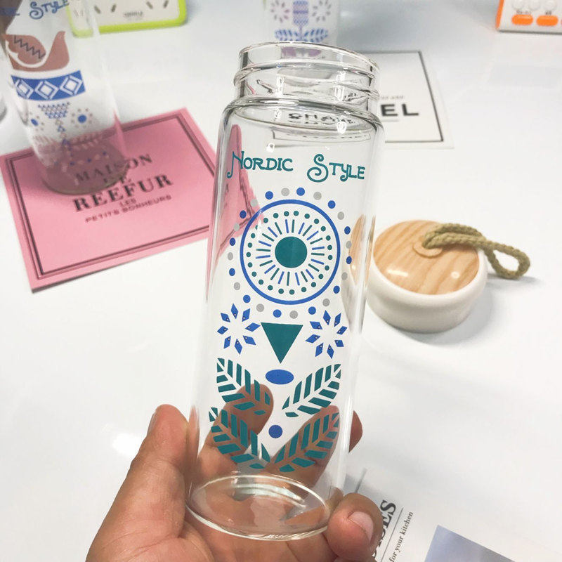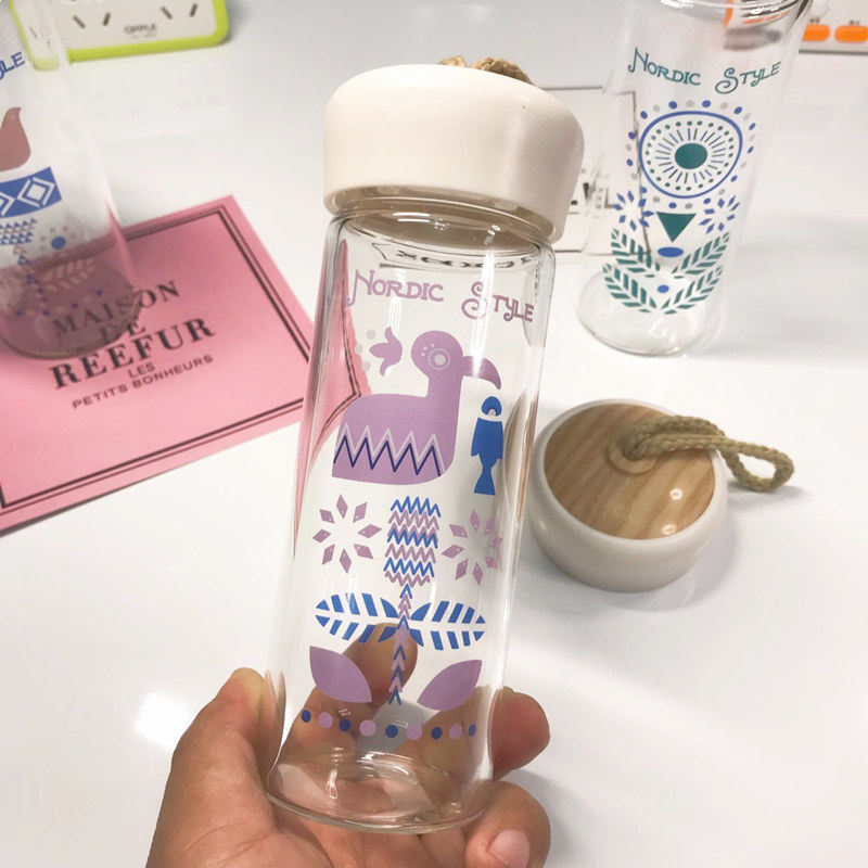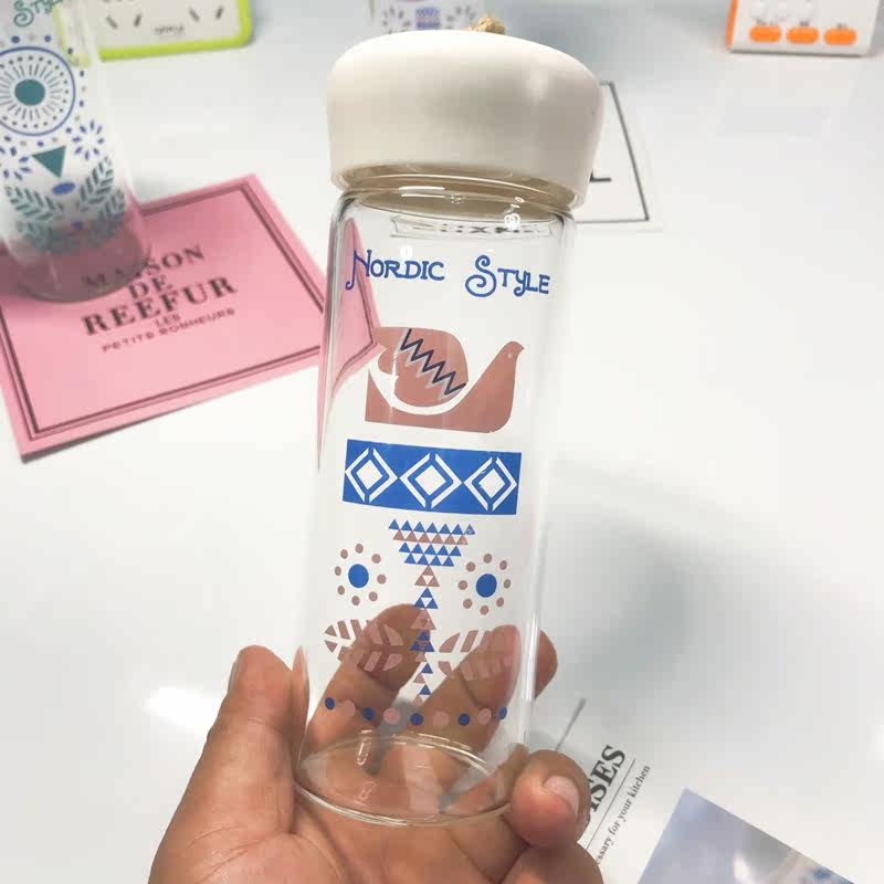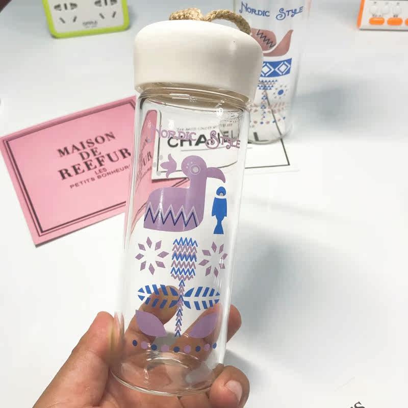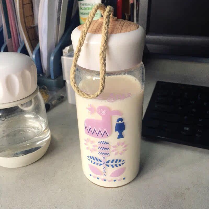 韩国波西米亚风情玻璃杯时尚便携随手带提绳水杯个性男女学生杯子