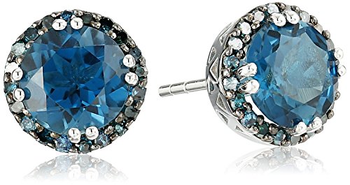 Sterling Silver London Blue Topaz and Blue Diamond Halo Stud Earrings (1/3cttw, I-J Color, I2-I3 Clarity)