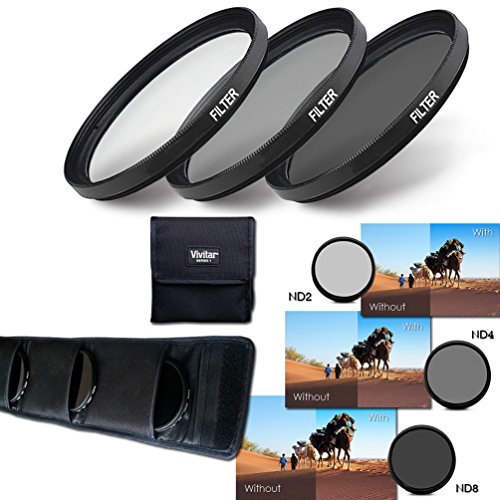 Includes: 58mm ND2 Filter + 58mm ND4 Filter + 58mm ND8 Filter + These Filters are designed to control and balance light and give a warmer look for sharp images, great lens filters to carry while shooting indoor and outdoor Photos and Videos + 58mm Tulip Shaped Hard Lens Hood + 58mm Soft rubber Lens Hood + 58mm Lens cap and Lens cap holder.