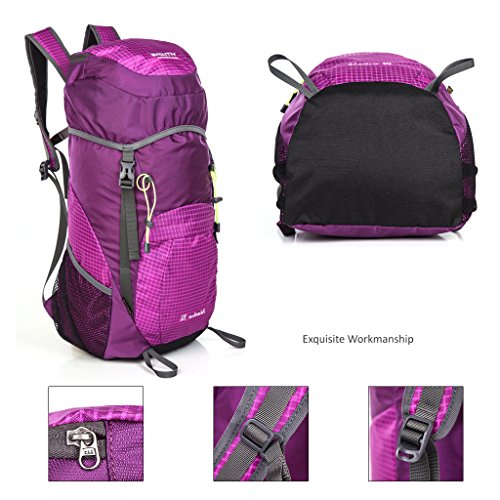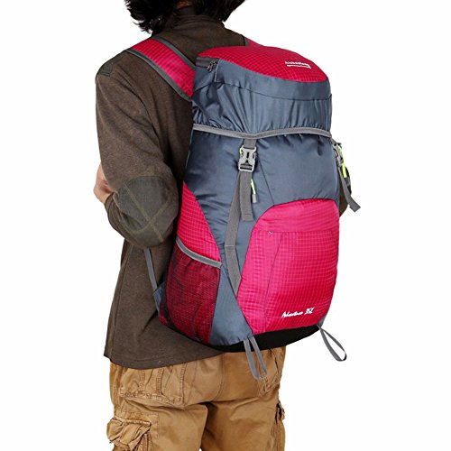 -. Feature : Large Capacity Travel Organizer: 35L foldable backpack, 1 main compartment, 2 top pouch (interior & exterior), 1 front spandex pouch, 2 sports bottle/umbrella holder, and padded backpack strap with chest clip / Foldable & Handy: packable design makes it can easily be folded into a compact pouch, you can put it in your suitcase or pocket, saving space while unused, and unpack it to make it function as a backpack / Fits Outdoor Sports: waterproof, abrasion-resistant, anti-scratch and ultra-lightweight, perfectly matches outdoor activities requirements. Its durability makes it work excellent in wild environment and providing outdoor sports lovers much more convenience / Ergonomic Design: anti-slip&breathable shoulder belt, effectively lighten the weight and prevent belt dropping while in moving. And the diversion air carrying technology combines with ergonomic design, allows air flows between users' back and the backpack, keeping cool and perfectly scatter the whole weight onto the back, shoulder and waist, reducing injuries / Specification: Dimension(unpacked) - 28*23*55cm (11.02*9.05*21.65inch), Folded Size - 19.5*22.5*6cm (7.67*8.85*2.36inch); Weight - 400g; Material - Nylon; Package Include: 1 x Outdoor Foldable Backpack