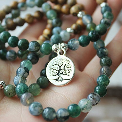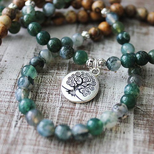 -. Title : 108 Moss Agate Picture Jasper yoga mala bracelet