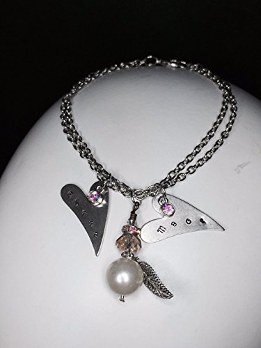 -. Title : 1 Hand Stamped Name Bracelet, Memory Bracelet, Angel Charm, Birthstone