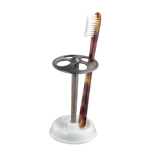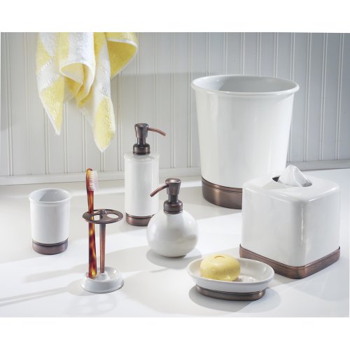 InterDesign York Ceramic Toothbrush Holder Stand for Bathroom Vanity Countertops - White/Bronze