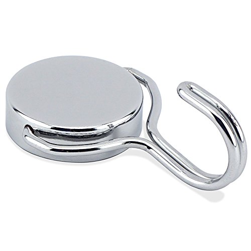 Master Magnetics MHHH07548BX Chrome Plated Steel/Plastic Grip Pad Magnetic Hook, Round Base Magnet Fastener with Rotating Swing Hook, 1.52" Diameter, 0.50" Thick/65 lb.