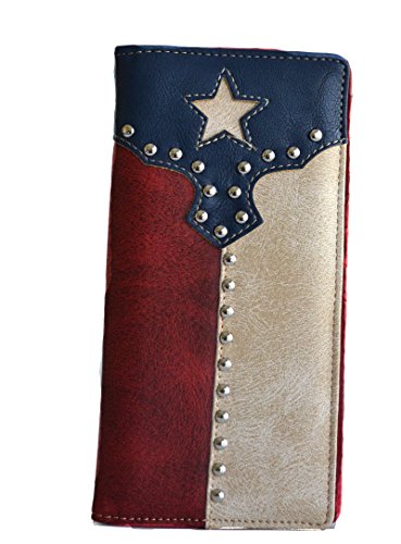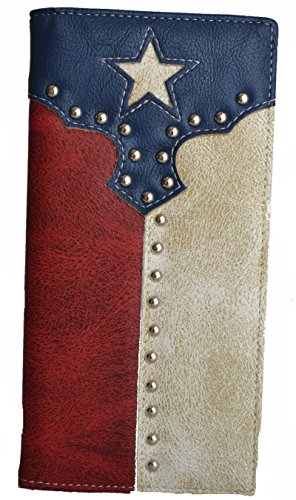 Binding : Apparel Product Description Carry your essentials in the Stony West Texas Pride collection men's secretary wallet. Designed with a cut out cross accent with contrasting Texas long star flag detailed trim,silver tone stud accent. Interior- 1 clear ID holder, 12 credit card slots, removable 6 clear credit card holder, 3 compartments for your cash or receipts. Exterior slip pocket. Measurements - 7" x 3.5" 0