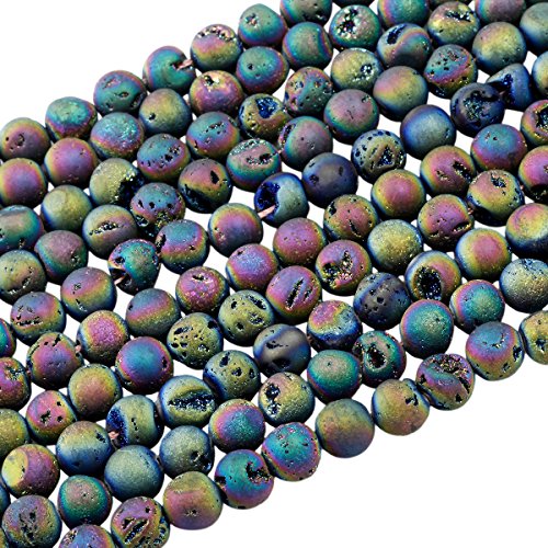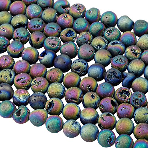 SUNYIK Rainbow Aura Titanium Coated Druzy Geode Loose Bead,for Jewelry Making,Crystal Quartz Agate Stone,8mm 15"