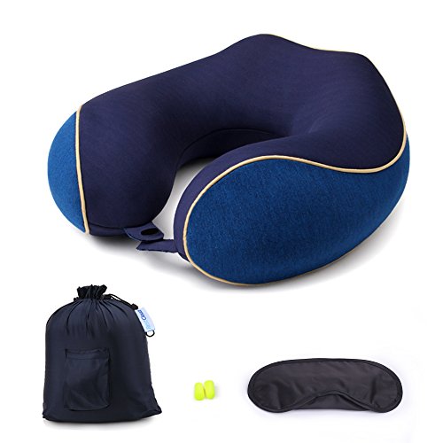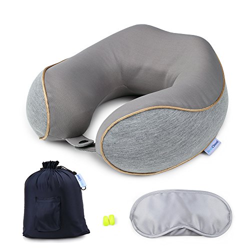 AIRPLANE TRAVEL NECK SUPPORT PILLOW BY RESTCLOUD,PURE MEMORY FOAM AIRPLANE PILLOW FOR TRAVEL WITH EYEMASK AND EARPLUGS FOR AIRPLANES, CARS,TRAINS OR OFFICE NAPS