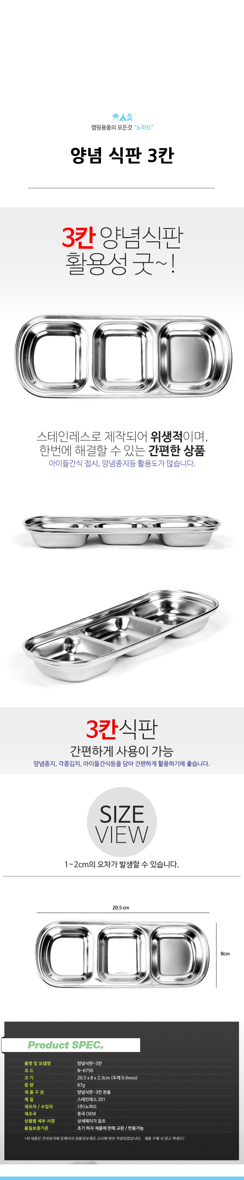 • 품명 양념식판 3칸 캠핑식기