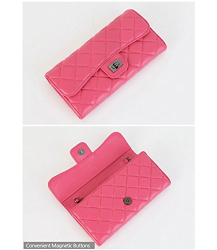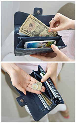 - Title : Womens Quilting Design Sheepskin Long Wallet Mini Clutch Bag Bifold Useful Purse (Navy)
