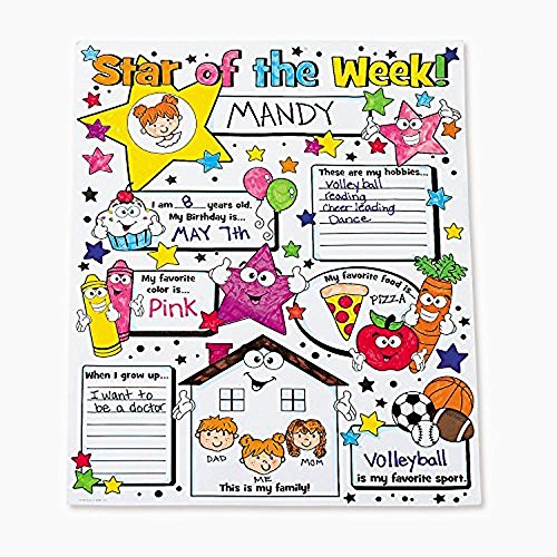 Color Your Own! ¡°Star of the Week¡± Posters 30 Piece(s) party-supplies Brand : Fun Express MPN(PartNumber) : IN-48/9329 EAN : 0645220161263 Package Dimensions(LxWxH) : 56x44x1cm ; 612 g