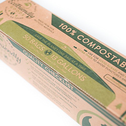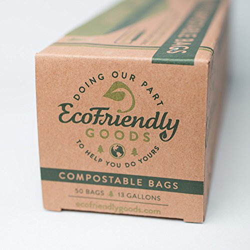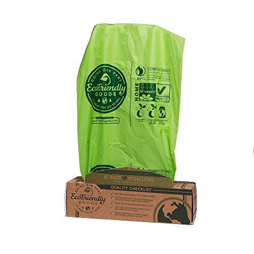 EcoFriendly Goods Compostable Bags - 50 Count Heavy Duty 13-Gallon Trash Bag 1.0 Milliliters Thick To Avoid Punctures & Tears - 100% Biodegradable...