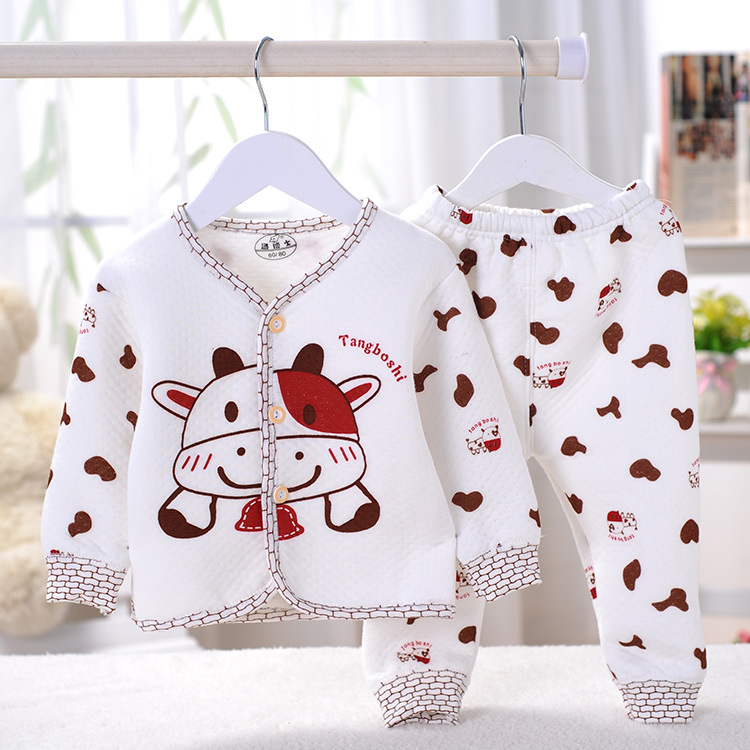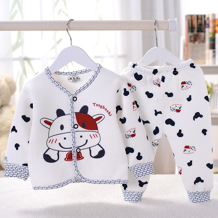 B21 Branded high quality thicker baby pyjamas one set (For height 59-66cm) 品牌高质量 竹纤维保暖厚性宽边开胸长袖长裤 一套(2裆裤)适合身高59-66cm
