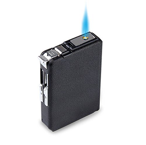 Feature : Cigarette Case Shaped,Perfect for your fun lifestyle, the best gift idea / Can be refilled by regular butane gas,Integrated cigarette holder with lighter function / Size: 9.4 x 6.3 x 1.8cm (H x W x T),Weight: About 100g / Cigarette case can hold 10 regular cigarettes maximum. / Note:In order to make it safer, we remove the gas before shipment, you should refill gas before using.