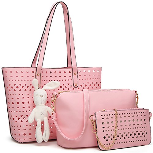 -. Brand : YNIQUE -. Department : womens -. Feature : MATERIAL: Hollow Out Quality PU Leather,no odd smell Texture:Hollow Out / CLOSURE: Top Magnetic Snap Closure / DIMENSIONS: 12.7"W x 11.1"H x 5.5"D, Handle Drop: 9.9 inches / POCKETS: 6 pockets(2 large compartments + 2 interior pockets in the small pockets & 1 zipper pocket in the midium bag, 1 pocket in the small purse/wallet ) / Buy 1 get 4!!! The package including: a YNIQUE Non-WOVEN dust bag + a midium crossbody bag with adjustable shoudler strap + a small purse/wallet with gold-tone chain shoulder strap + a cute plush bunny -. ProductGroup : Shoes -. ProductTypeName : HANDBAG -. Title : YNIQUE Women Summer Handbags Shoulder Bag Top Handle Purses Designer Tote Bag 3 Bags Set