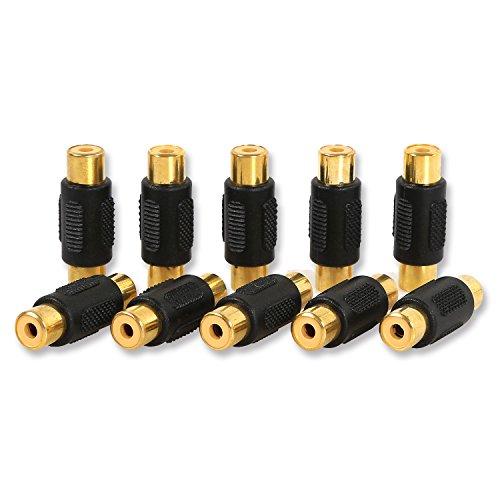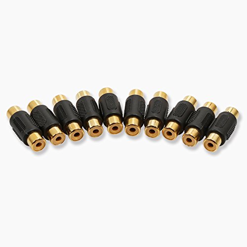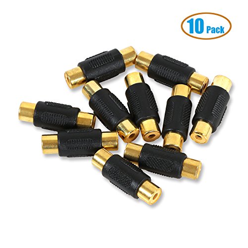 Electop 10 Pack Audio Video RCA Female to Female Coupler Adapter Gold
