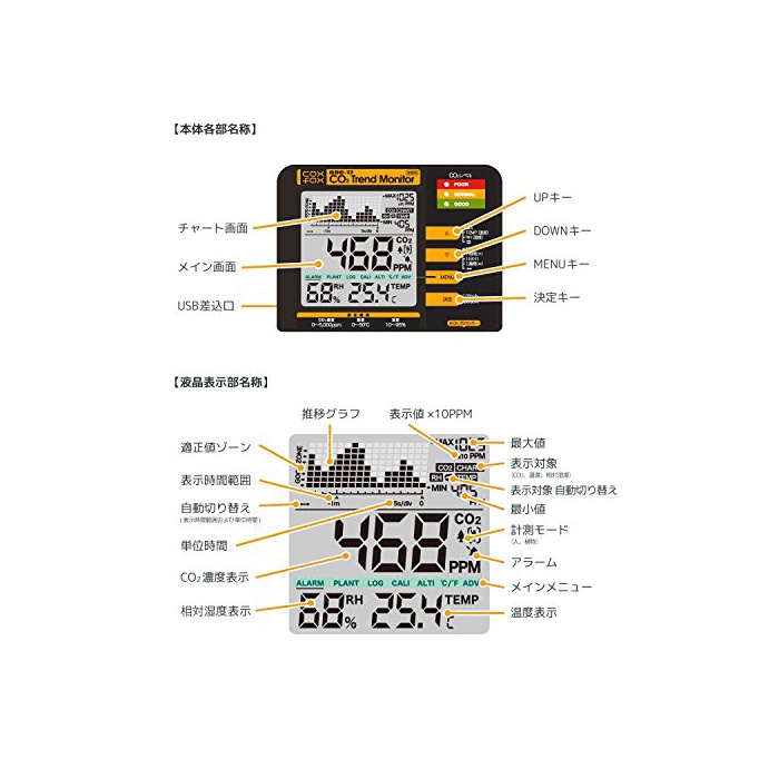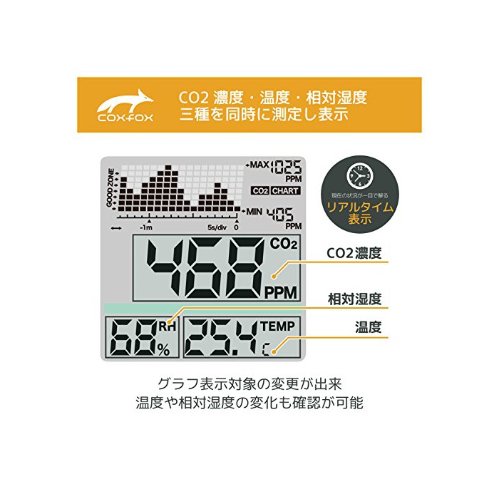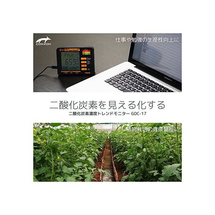 원본상품명: coxfox 二酸化炭素濃度トレンドモニタ? 二酸化炭素濃度計 【付?品:USBケ?ブル×2本、ACアダプタ?、壁掛用ストラップ、取付ネジ】GDC-17