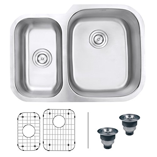 Ruvati RVM4505 Undermount 16 Gauge 29" Kitchen Double Bowl Sink, Stainless Steel