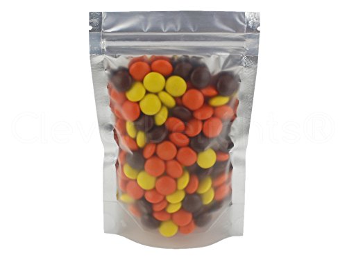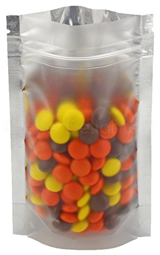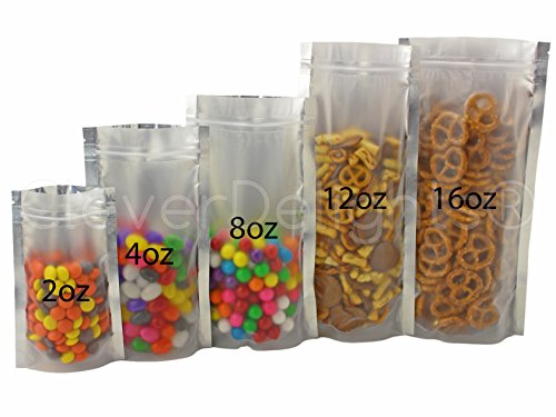 50 Pack - CleverDelights Silver/Clear Stand-Up Pouches - 4" x 6" x 2" - 2oz - Resealable Ziplock Bag