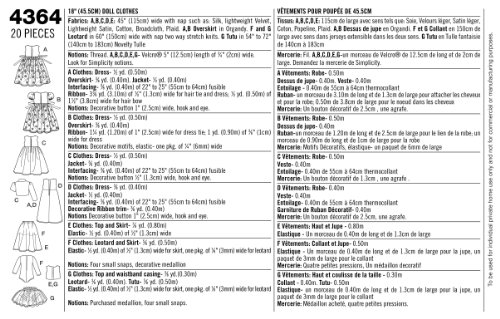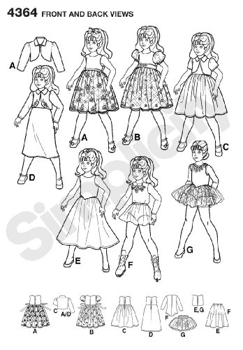 Simplicity Sewing Pattern 4364 Doll Clothes, One Size