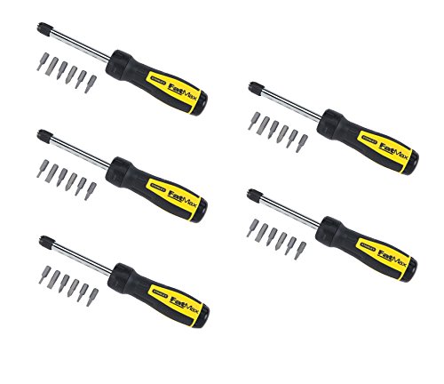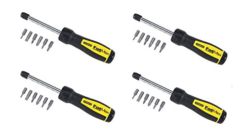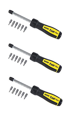 The Stanley 69-189 Ratcheting Multi-Bit Screwdriver is a multi-bit ratcheting screwdriver that holds 6 bits securely in the handle. The handle is made from a bi-material texture for torque. Its ratcheting mechanism works in 3 different positions. The bits are made of chrome vanadium steel. It features a 3-position ratcheting mechanism which enables clockwise, counter clockwise and locked ratcheting positions. The quick release magnetic bit holder provides for fast and secure bit change capability. Bi-material textured handle for torque. Includes: 6 chrome vanadium (CRV) bits stored inside the handle for easy access.