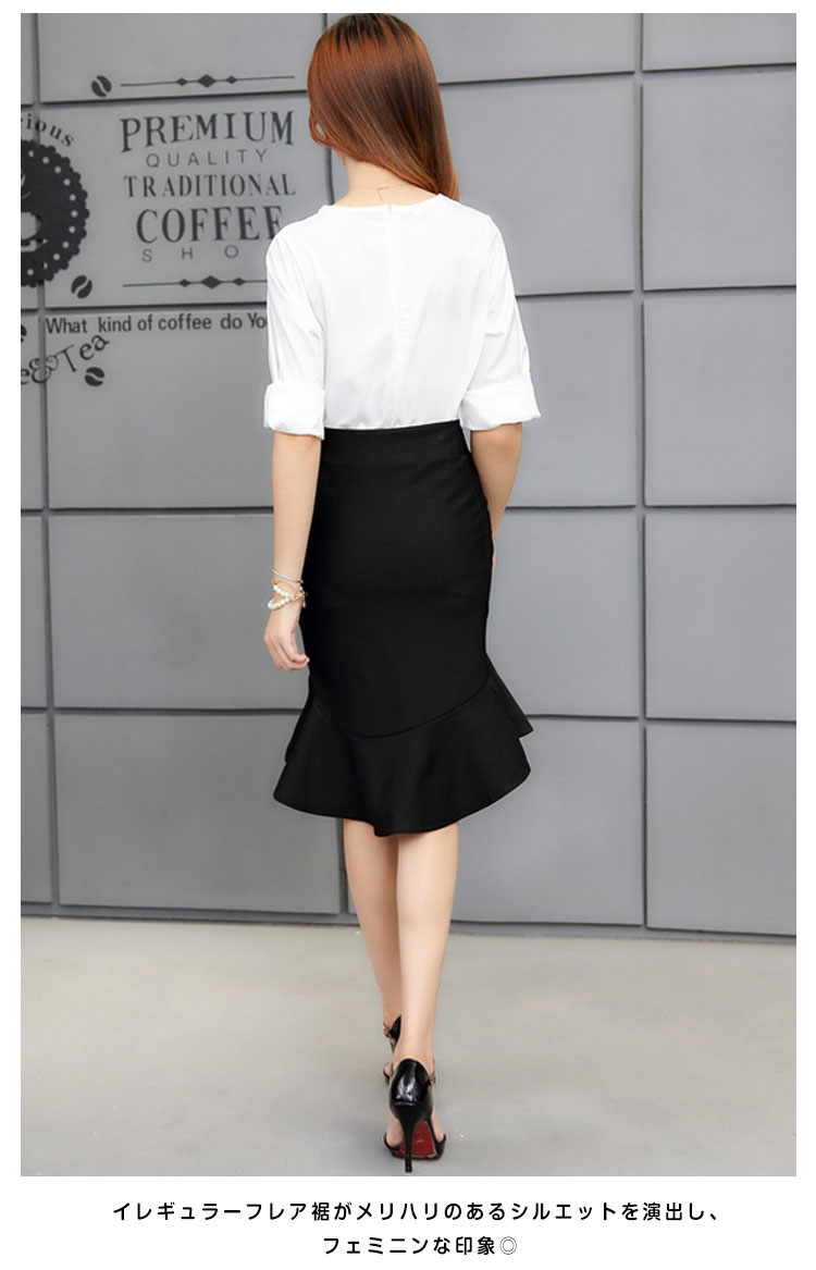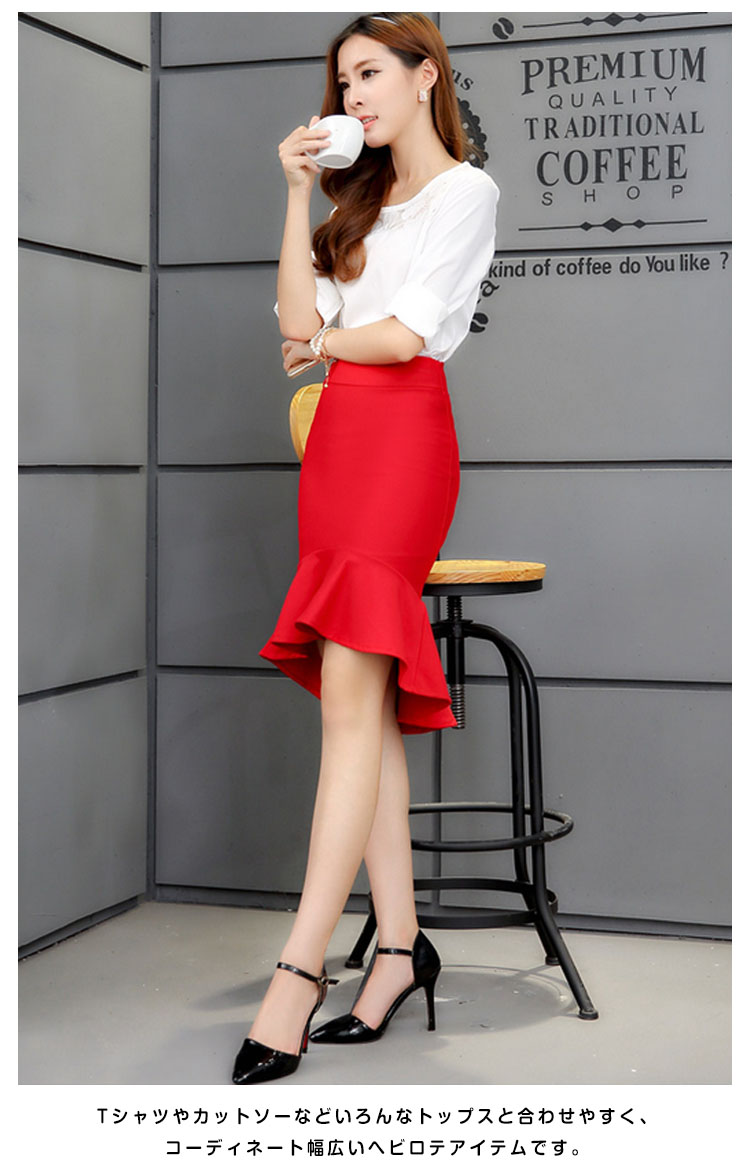 | 女の魅力を最大限引き出すマーメイドスカート。上品ストレッチ抜群の素材を採用するから、タイトながら窮屈感ゼロ!イレギュラーフレア裾がメリハリのあるシルエットを演出し、フェミニンな印象◎Tシャツやカットソーなどいろんなトップスと合わせやすく、コーディネート幅広いヘビロテアイテムです。しっかり生地感でシーズンレスに着用いただけるから1枚持っておくととっても便利です。 | |