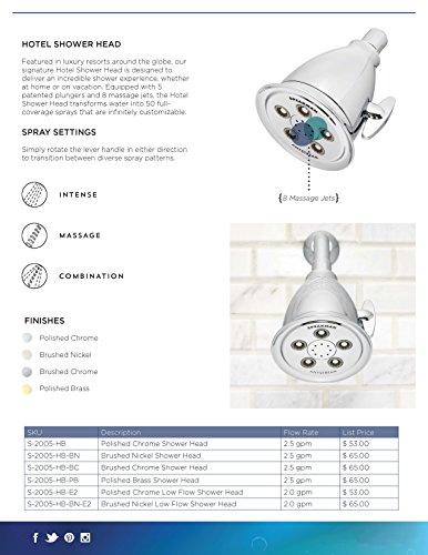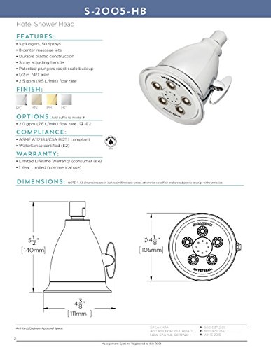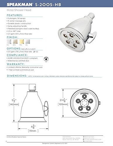 Popularized by the world's finest hotels, timeless styling, and durable Speakman engineering, the Anystream® Hotel Massage Showerhead is now a favorite fixture at many hotels and top seller in resorts and homes alike. Inspired by classic Speakman design elements, The Anystream® Hotel Massage Showerhead impresses with a belled casing and flared lip. 8 center massage jets plus a bounty of 50 powerful full-body sprays. Adjust the smooth-turn T-handle to switch effortlessly through full coverage and combination spray, gentle rain, and therapeutic, pulsating massage streams.