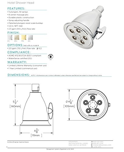 2.5 gpm flow control, fits standard U.S. plumbing connections
