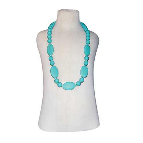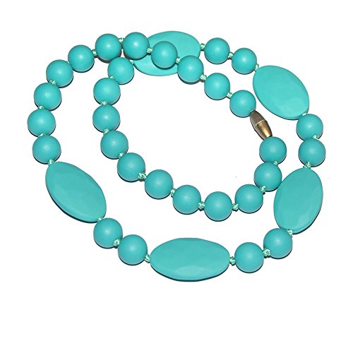 HAL Silicone Baby Teething Necklace for Mom, Round and Flat Chewable Teether Toy for Baby-Turquoise