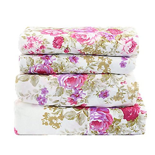 1800 Series Super Soft Egyptian Comfort 4pcs KING Sheet Set Microfiber Floral Rose Purple & Pink