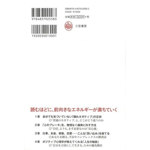 【商品説明】 定価(税込み):1,404円 値引き:10% OFF なぜ、“元気”が出ないのか?感情が“暴走”してしまうのか?すぐに“行動”できないのか?--その原因は「隠れネガティブ」にある!ポジティブ心理学の日本における第一人者が教える、心の奥底にある「隠れネガティブ」を解消し、強くしなやかなマインドを育てる法。 バーゲンブック 新品 特価 格安 ビューティー&ヘルス メンタルヘルス 心理 ビューティー ヘルス 理学 日本 | |