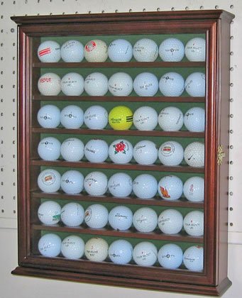 -. Title : 49 Golf Ball Display Case Cabinet Holder Rack w/ UV Protection, Solid Wood