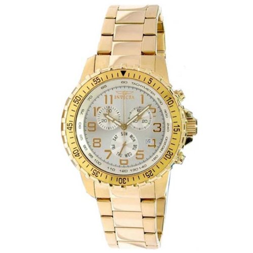 Invicta Men's 11369 Specialty Pilot Design Chronograph Silver Dial 18k Gold Ion-Plated Stainless Steel Watch