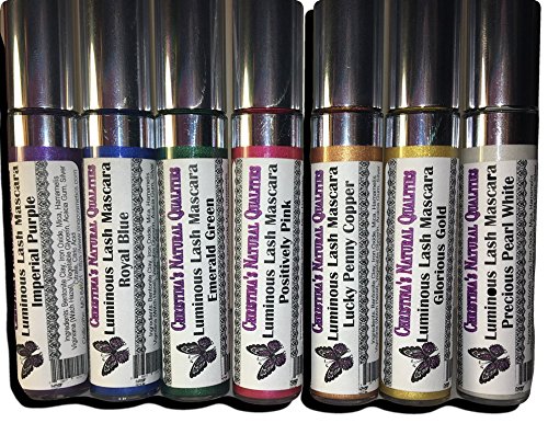 Studio : Christina's Natural Qualities Publisher : Christina's Natural Qualities Binding : Misc. Product Description Christina's Natural Qualities' Luminous Lash Mascara is not only stylish and fun, but makes your eyes light up with their rich, illuminating colors. We offer seven exciting colors to enhance your natural eye color and give you "Look At Me" Eyes with a water resistant All Natural formula. Christina's Natural Qualities' Luminous Lash Mascara is made from ground minerals and herbal extracts for a truly natural mascara that is Quick Drying and Non-Irritating. No more itchy, watery, red eyes. The excellent coverage of our Mineral Mascara will last all day and is water resistant. Why choose only one color? This package contains ALL 7 Available Colors: Royal Blue, Lucky Penny Copper, Glorious Gold, Emerald Green, Positively Pink, Imperial Purple and Precious Pearl White. Use them individualy to enhance your eyes natural color or use a couple of them together for a fun playful look! The White mascara can be used as a primer or by itself for a dramatic look. Over $100 value!!! Like all of our products, our Mascaras are 100% Natural, Cruelty Free, Soy Free and Vegan. 0
