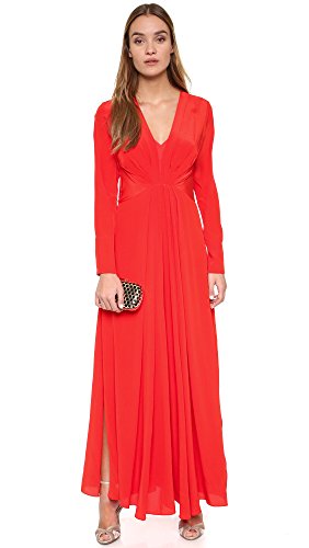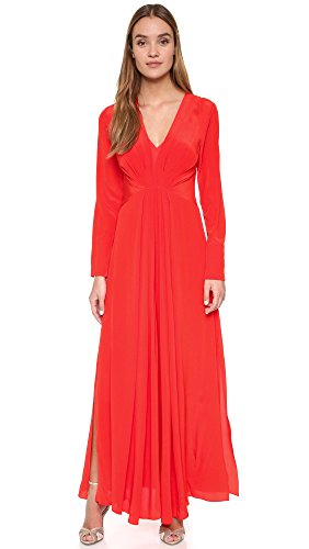 Pleats fan from the seamed waist of this elegant silk By Malene Birger gown, shaping the bodice and lending movement to the floor-length skirt. Covered hook-and-eye closures secure the plunging V neckline. Long sleeves and vented cuffs. Hidden side zip. Optional slip-dress lining.
