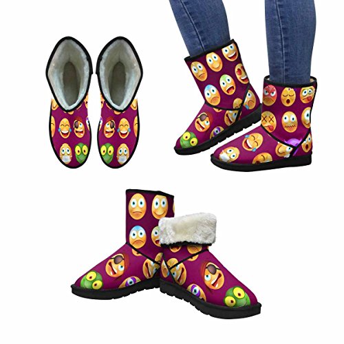 (InterestPrint)/Women's/Boots/DIRECT FROM USA/InterestPrint Women's Snow Boots Set Of Cute Emoticons On Dark Design Art Print Deco Unique Des...