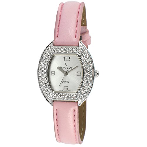 Peugeot Women's 339PK Oval Crystal Bezel Leather Strap Watch